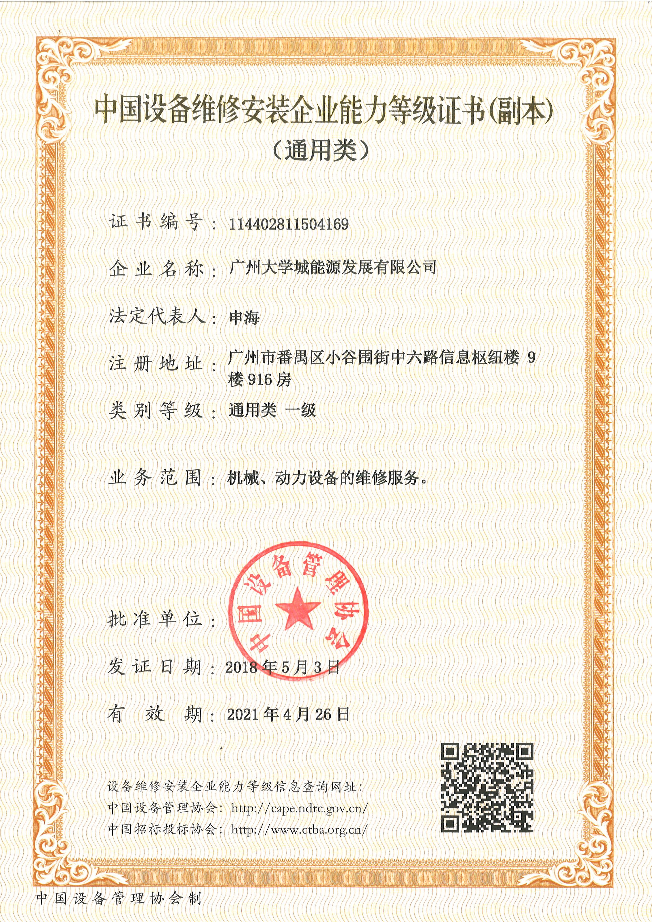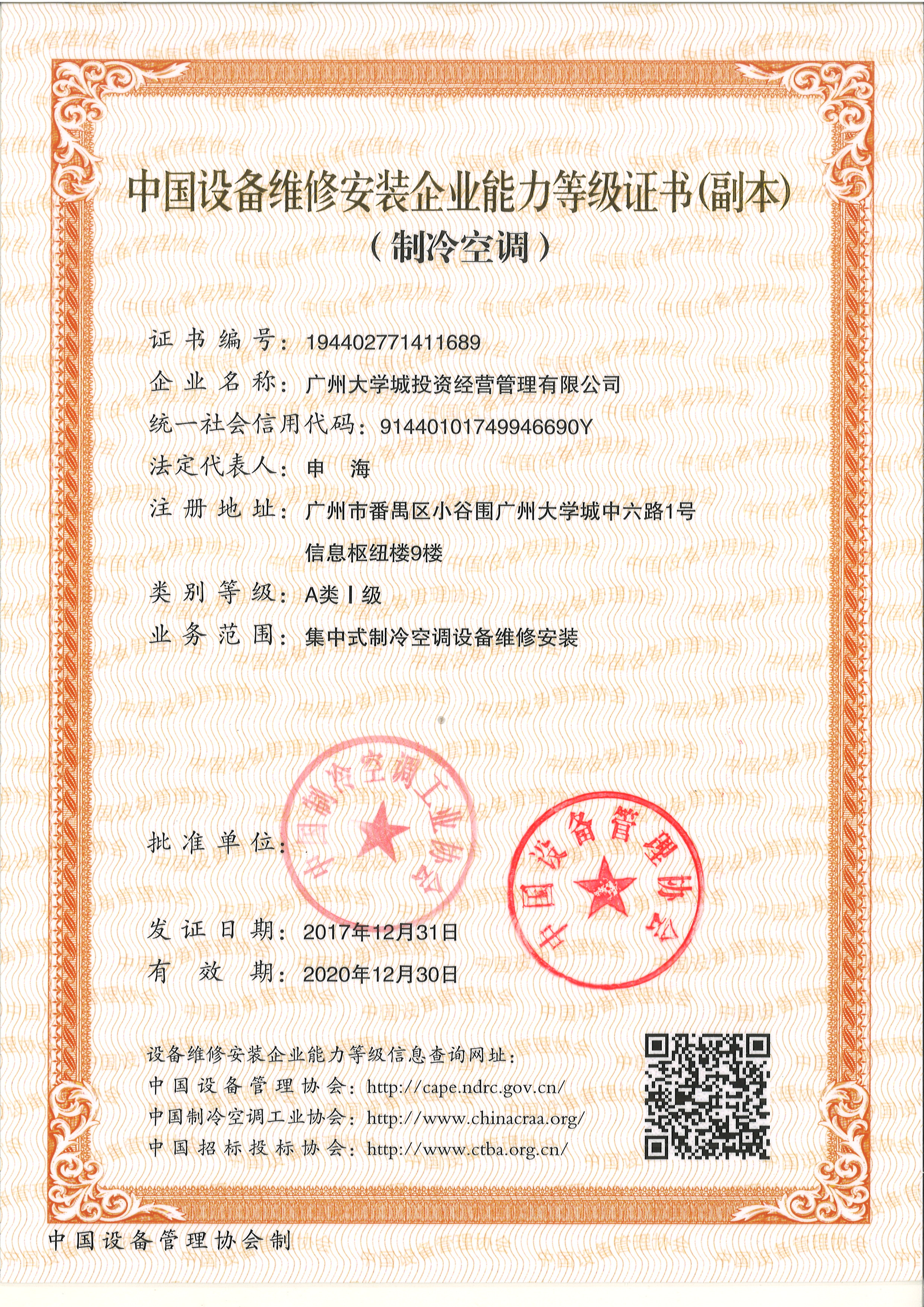 能源公司製(zhì)冷空調行(háng)業一級維修資...