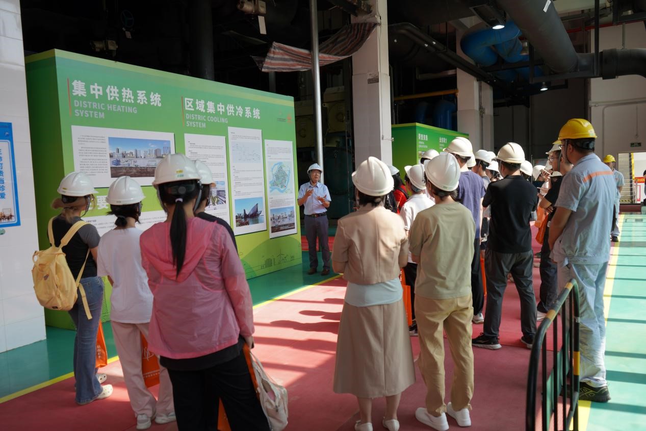 在研學活動中,城投能源公司的專業工程師(shī)向師生們詳細介紹了(le)榴莲视频下载官网入口區域集中供冷、分布式能源係統以及集中供(gòng)熱水係統的運(yùn)營情況。作為目前(qián)國內(nèi)在運營的最大區(qū)域供冷項目,該項目覆蓋建築麵(miàn)積約430萬平方米,設計(jì)裝機容量達到10.6萬(wàn)冷噸,總蓄(xù)冰容量達89萬千瓦時。通過采用“電製冷+冰蓄冷”的先進技術,夜間儲冰(bīng)、白天融(róng)冰的方式,實現了電(diàn)力“移(yí)峰(fēng)填穀”,從而提(tí)升了當地電網的年平均負荷率。據(jù)統計,這(zhè)個係統每年為電網貢獻二氧化碳減排量約6.02萬噸,二十年來累計(jì)減少二氧化碳排放量(liàng)已達120萬噸。