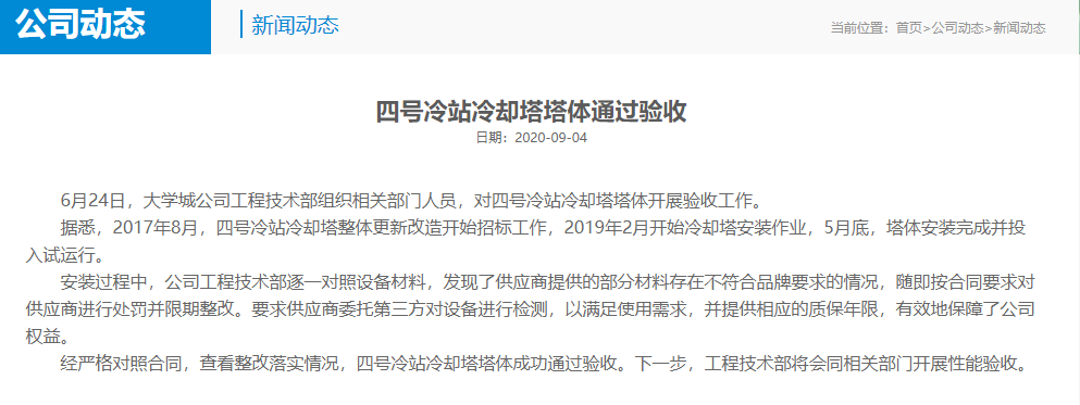 四號冷站(zhàn)冷卻塔塔體(tǐ)成功通過驗收