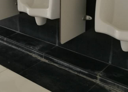 開挖所有蹲(dūn)廁、坐廁地麵突起部分(台階),檢(jiǎn)查蹲廁、坐廁所有排水管接口漏(lòu)水情況,修(xiū)複處(chù)理漏水點(diǎn)、接口,做好蹲廁、坐廁下麵(miàn)開挖地麵防水(特別是排水管接口處),回填修複地(dì)麵、重鋪(pù)黑色(sè)大理石(要求與原鋪(pù)設一致)、安(ān)裝回所有蹲廁(8個)、坐廁(2個(gè))(如未損壞情況,如有損(sǔn)壞則一起更換)和安裝回原廁所隔板(地麵開挖(wā)前廁所隔板要預先拆除,事後恢複),重鋪黑色大理石麵積約(yuē)20m2,回填修複地麵體積約4.3m3。