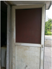 (二)首層倉(cāng)庫一扇鋼塑門長年(nián)使用,已經無法正常使用(見下圖)。處理方案:拆除原破損鋼塑門,安裝一扇新鋼塑門框+門扇(shàn)。