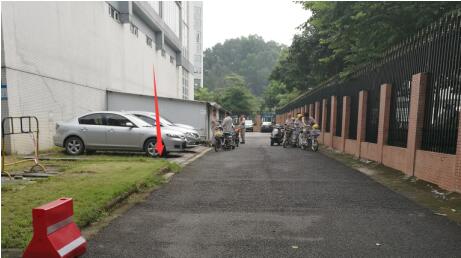 (四)南邊停車場(chǎng)經常有外來車輛停泊。處理方(fāng)案:進出(chū)路口增(zēng)設一(yī)個道閘,位置見下圖(tú)。