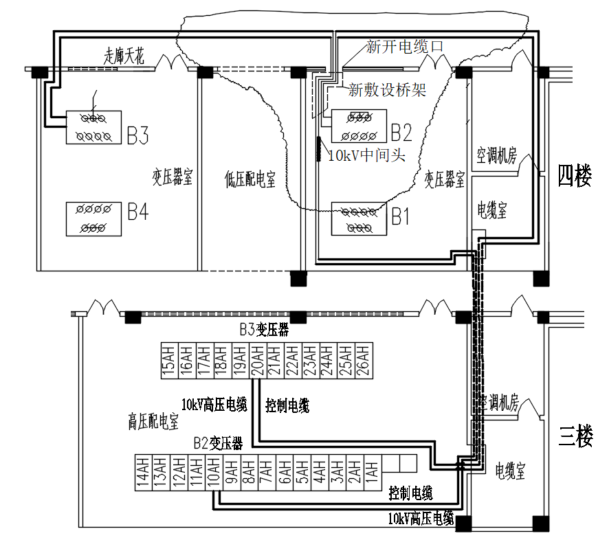 附圖2B2B3變壓器電纜調換(huàn)後走向圖