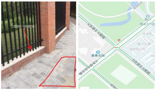 ①如(rú)上(shàng)左圖所示,該排水管閥門井3ZD02-100已被校方圍牆及(jí)綠化覆蓋,需順著排水管走向(xiàng)開挖中大教學區圍牆外路麵,查找兩條排水(shuǐ)管自供中大教學區DN300冷凍水(shuǐ)母管(guǎn)的引出點。人行道地磚移除麵積約5m2,土方開挖約8m3。開挖後,基坑(kēng)周邊采用鐵馬進行圍蔽,並做好安全警示。