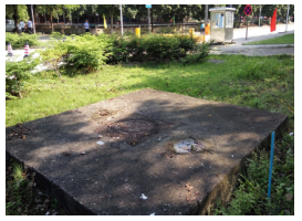 ① 如上(shàng)圖(左(zuǒ))所示,該閥門井蓋(gài)板為一整(zhěng)塊約3300mm×1800mm×280mm的水泥蓋板。破壞(huài)該井蓋板前,采用鐵馬圍蔽,並做(zuò)好安(ān)全警示。破除閥門(mén)井蓋板,保留原圓形井蓋,並在恢複井蓋板時重新使用。綠化、植(zhí)被移除麵積約3 m2。