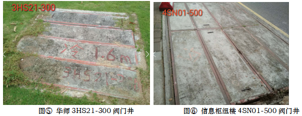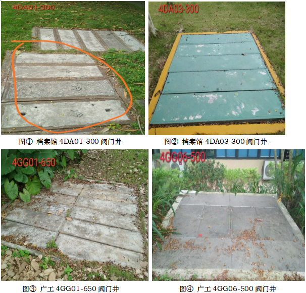 3、由於部分供冷管網閥門井蓋板由多塊小型(xíng)水泥(ní)蓋板拚合(hé)而成,重量大(每塊約150kg),每次下井操作閥門前需耗費大量人力、時間移開蓋板,且不利於應急操作。我司(sī)擬將檔案館(4DA01-300、4DA03-300)、廣工教學區(qū)(4GG01-600、4GG06-500)、樞紐樓(4SN01-500)、省中醫正門(4ZY01-450)、華師教學(xué)區(3HS21-300)共7個(gè)閥門井的水泥蓋板恢複為圓形鑄鐵井蓋。及將熱水係統閥門井的已破損的(de)7個閥門(mén)井蓋板進行更換。