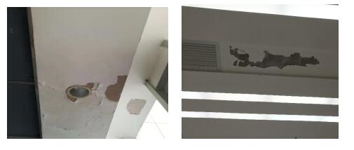 樞紐樓主樓9樓、10樓天花和牆壁及其他樓層公共區域天花(huā)、牆壁有多處汙漬、開裂脫(tuō)落,現對其進行修複。
