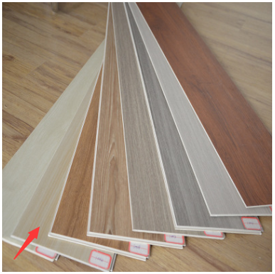 PVC塑膠地板色彩條紋(箭頭(tóu)所指) 踢腳線(xiàn)(箭頭所指)