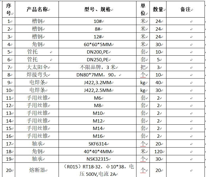 項目名稱:20208月(yuè)冷材料采購(gòu)包(bāo)組二五金類