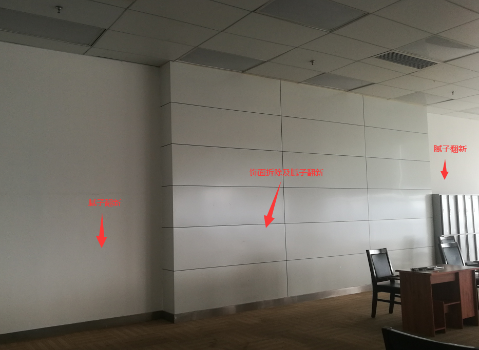 1、飾麵(miàn)板(bǎn)拆除(chú)及(jí)膩子更新